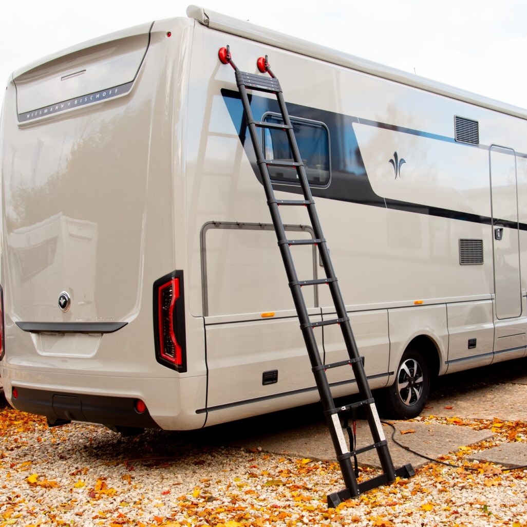 Upptäck den nya Leitertec teleskopstegen designad för maximal kvalitet, säkerhet och flexibilitet vid alla höjder. Stegen finns i flera storlekar från 2 meter upp till 3,8 meter och har en lätt vikt på upp till 15 kg, vilket gör den enkel att hantera oavsett uppgift. Oavsett om du behöver en smidig stege till husvagnen, skåpbilen eller husbilar, erbjuder Leitertec robusta och pålitliga lösningar för alla dina behov. Det unika med Leitertec är det kraftfulla sugproppssystemet som ger maximal stabilitet och skyddar underlaget mot repor och skador.