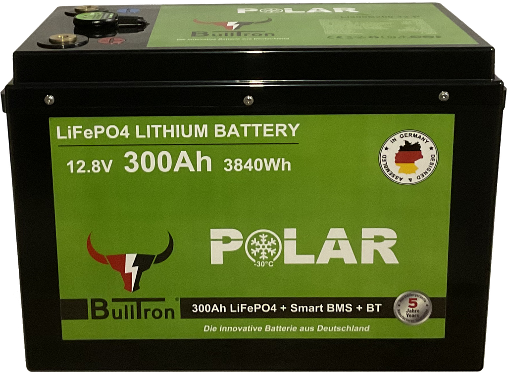 Bulltron 300 Ah LiFePO₄-batteri kombinerar hög energitäthet, låg vikt och servicevänlig design. Utvecklat i Tyskland för husbil, båt och off-grid-system där driftsäkerhet är avgörande.