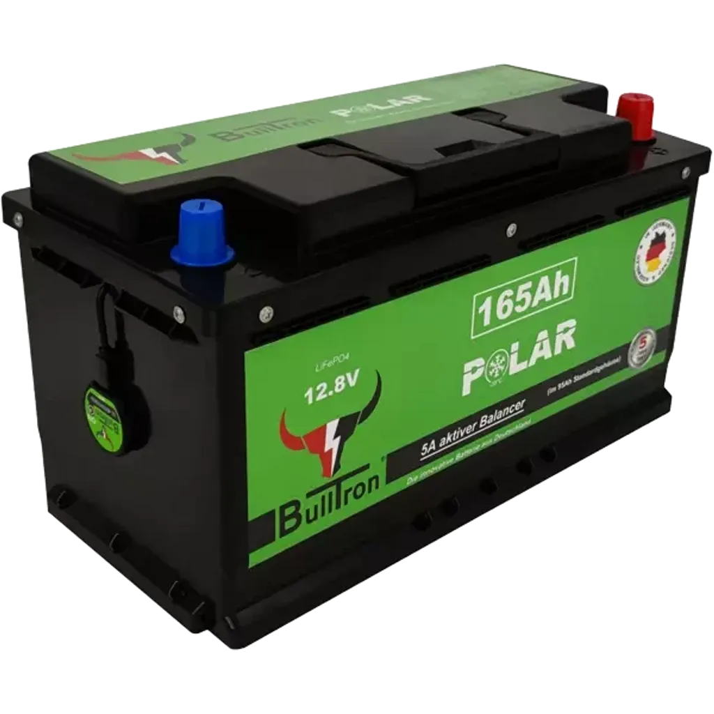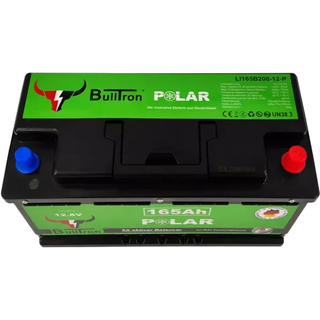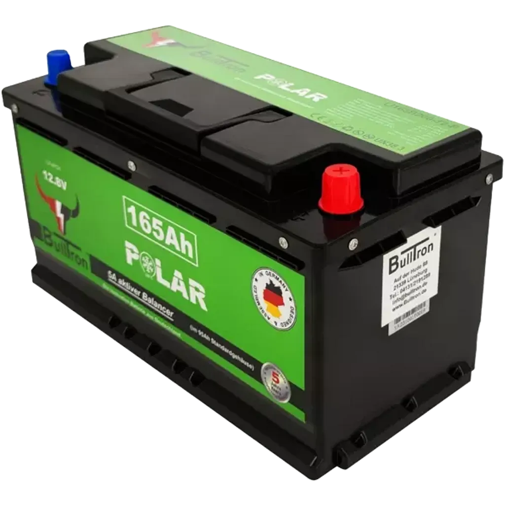 Bulltron 165 Ah LiFePO₄-batteri är utvecklat för husbilar, vans och fritidsfordon. Det har samma mått och anslutningar som ett 95 Ah blybatteri men levererar 165 Ah – över 70 % mer energi utan att kräva mer utrymme. Den integrerade cellvärmaren aktiveras automatiskt vid laddning under 0 °C och möjliggör drift från –30 °C till +60 °C utan att förbruka batteriets kapacitet.