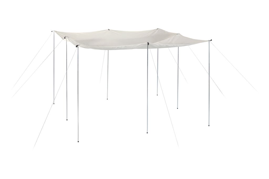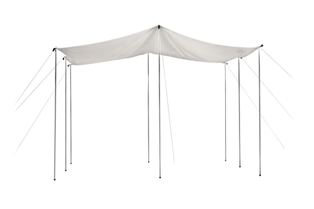 Mångsidig tarp i T/C-tyg med PFC-fri beläggning. Ger pålitligt skydd mot sol och regn. Certifierad enligt Oeko-Tex och UV Standard 801 – perfekt för camping och friluftsliv.