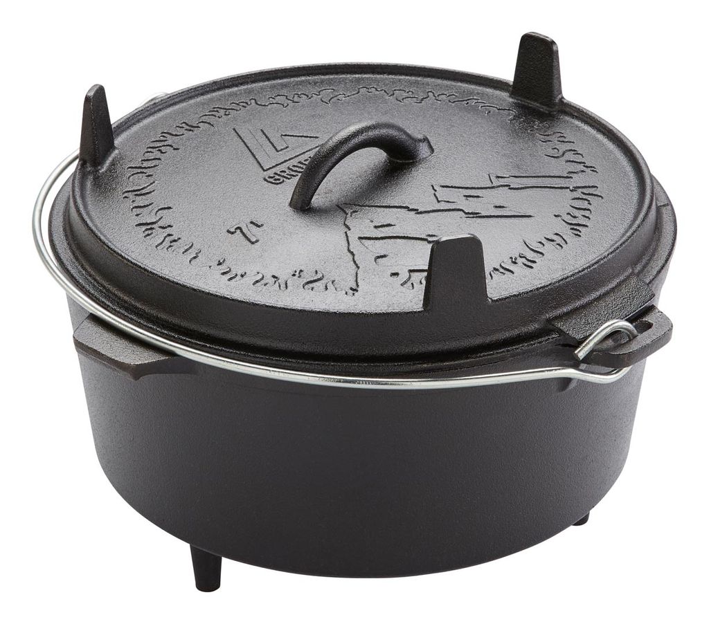 Askja Pot 7 L är en massiv gjutjärnsgryta framtagen för matlagning över öppen eld, grill eller kolglöd. Den tål höga temperaturer och långvarig användning, vilket gör den till en pålitlig del av friluftsköket.
