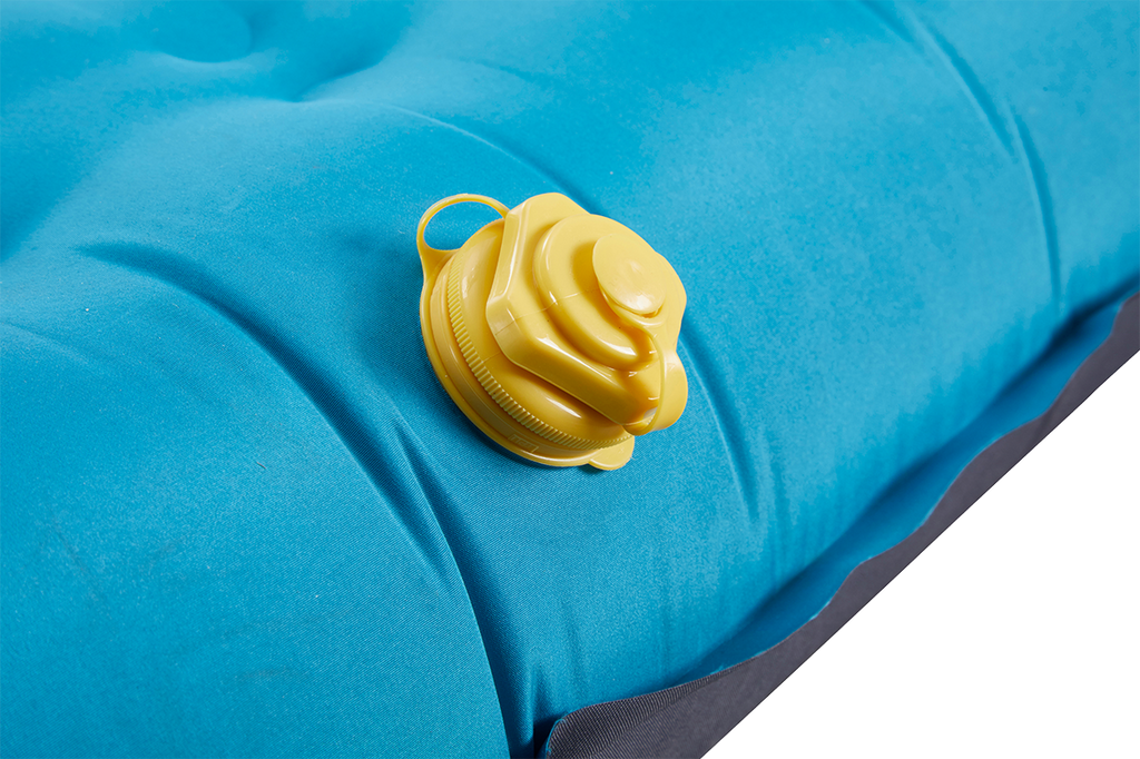 Trots sin storlek väger madrassen bara 1,80 kg och rullas enkelt ihop till ett packformat på 50 × Ø 18 cm. Den är lätt att ta med i bilen, båten eller husvagnen. Ytmaterialet i TPU är slitstarkt och lätt att rengöra – torka av eller skaka av smutsen vid behov.