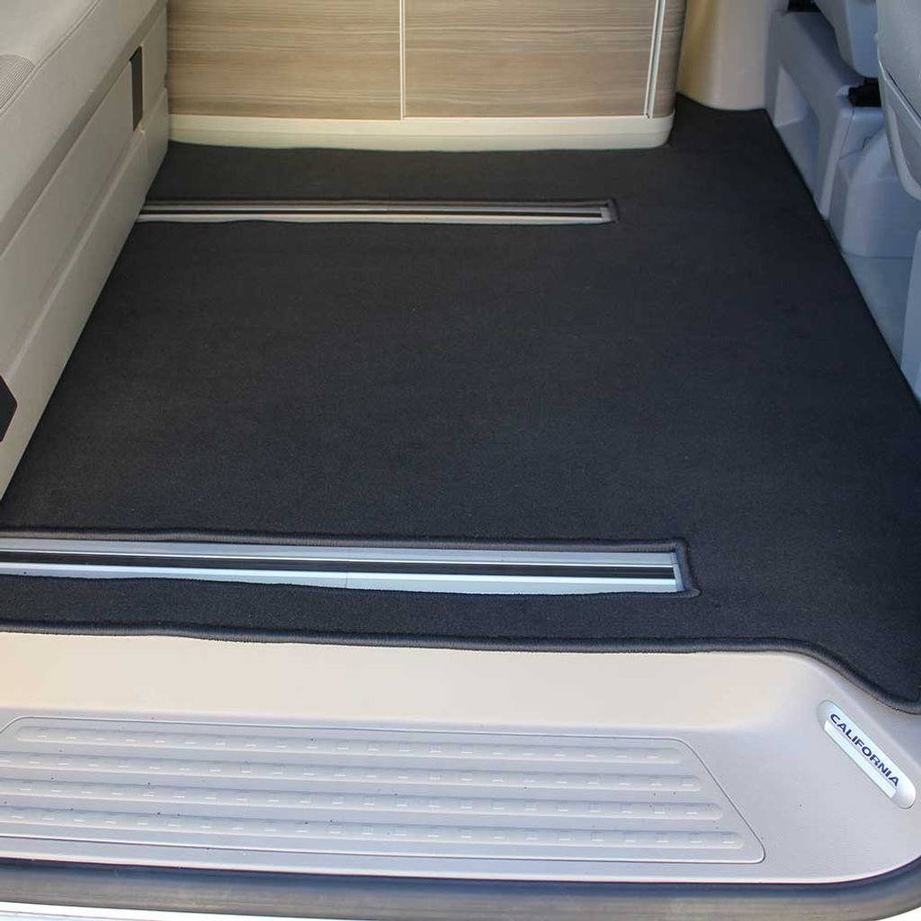 Bodelsmatta för VW T5/T6/T6.1 California Comfortline & Ocean från BusBoxx är en exakt anpassad golvmatta som skyddar innergolvet i din camper mot repor, smuts och vardagsslitage. Den täcker hela bodelens golvyta – från skjutdörr till bakre sitsar – utan behov av justering eller klippning.