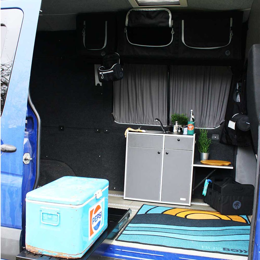 BusBoxx väggmonterad förvaringsbox Small är designad för att skapa ordning och frigöra plats i din husbil, campervan eller skåpbil. Den fästs direkt på väggen och utnyttjar utrymmet effektivt utan att ta golvyta – perfekt för små fordon och vanlife-inredning.