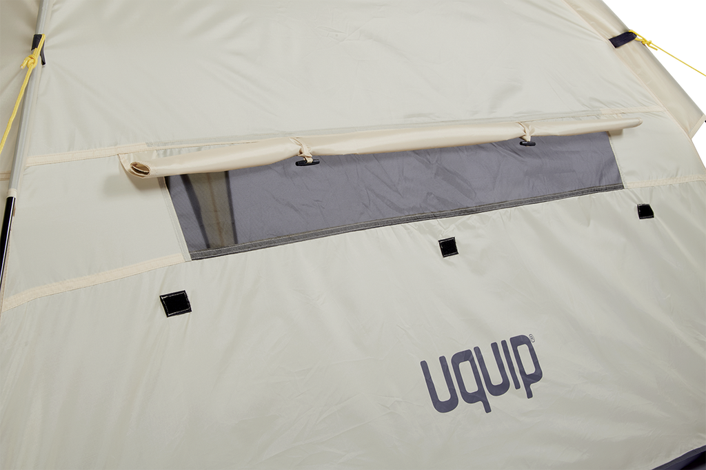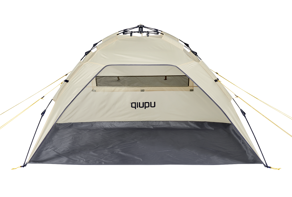 Två ventilationsfönster med myggnät kan öppnas eller stängas beroende på väder – perfekt för god luftcirkulation under varma dagar. Ett vattentätt golv skyddar mot fukt från marken och gör det bekvämt att sitta eller ligga i tältet.