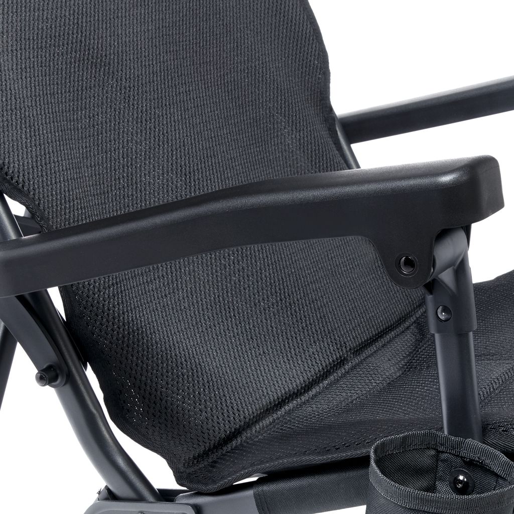 Sitsen är klädd i ventilerande Air Mesh-polyester som låter kroppen andas även under varma sommardagar. Den ergonomiska ryggformen och breda sittytan ger bekvämt stöd för rygg och ben, vilket gör Barry idealisk för camping, fiske, trädgård eller festivaler.