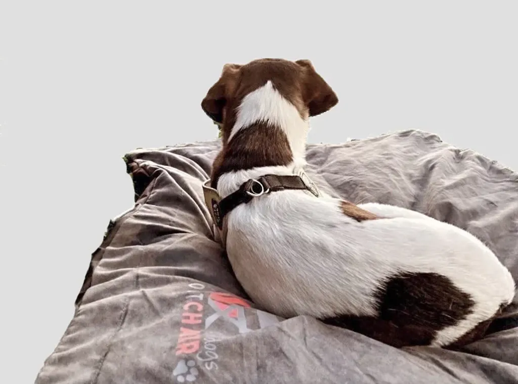 Comforter S trådlöst värmetäcke för hundar ger upp till sex timmars värme med en medföljande powerbank och laddkabel. Täcket är helt trådlöst och kan användas både inomhus och utomhus. Den lugnande och stabila värmen håller hunden varm när temperaturen sjunker.