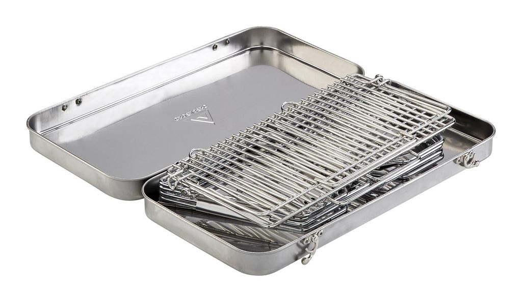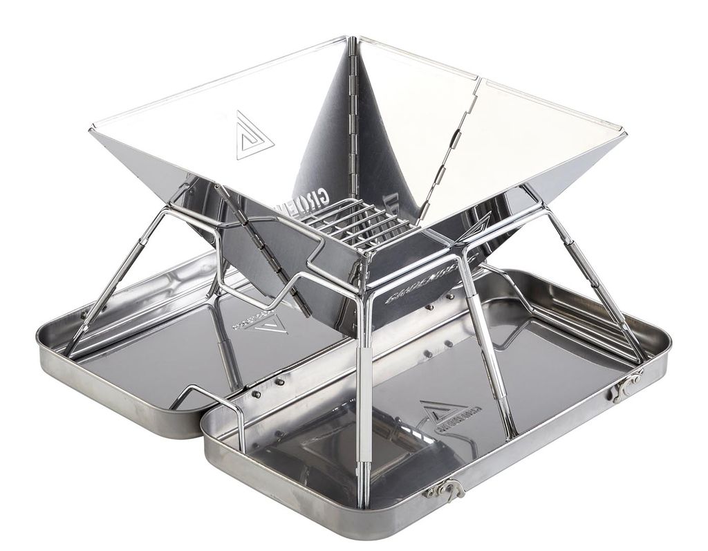 Hopfällbar campinggrill i rostfritt stål från Groenberg. Lätt, stabil och värmetålig konstruktion som fungerar både som grill och eldstad. Perfekt för friluftsliv året runt.