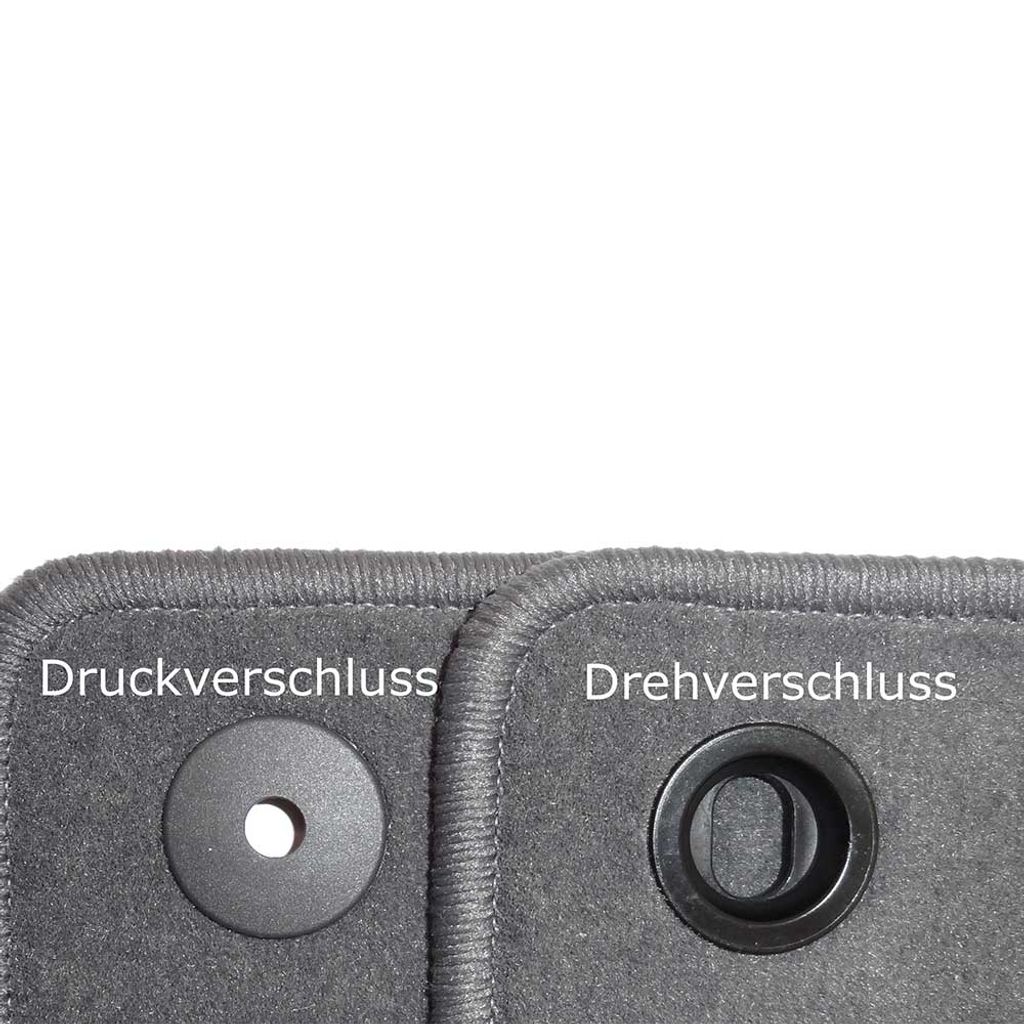 Kantavslutningen i ton-i-ton BCF 2000-garn förhindrar fransning och ger en professionell finish. Varje set är handgjort i Tyskland med fokus på hållbarhet och passform. Finns i grå, svart och antracit – perfekt matchat till bilens originalinredning.