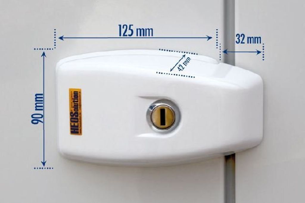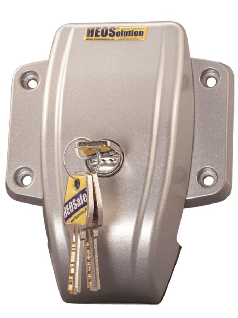 Detta kraftfulla och smart konstruerade extralås från HEOSafe® monteras på utsidan av skjutdörrar, bakdörrar och dubbeldörrar i husbilar och skåpbilar. Konstruktionen är framtagen för att effektivt förhindra att dörrarna öppnas utifrån – även vid försök att manipulera handtaget eller bryta upp det yttre låset.