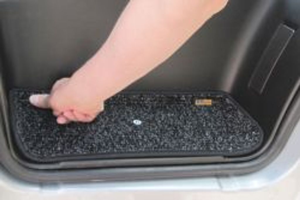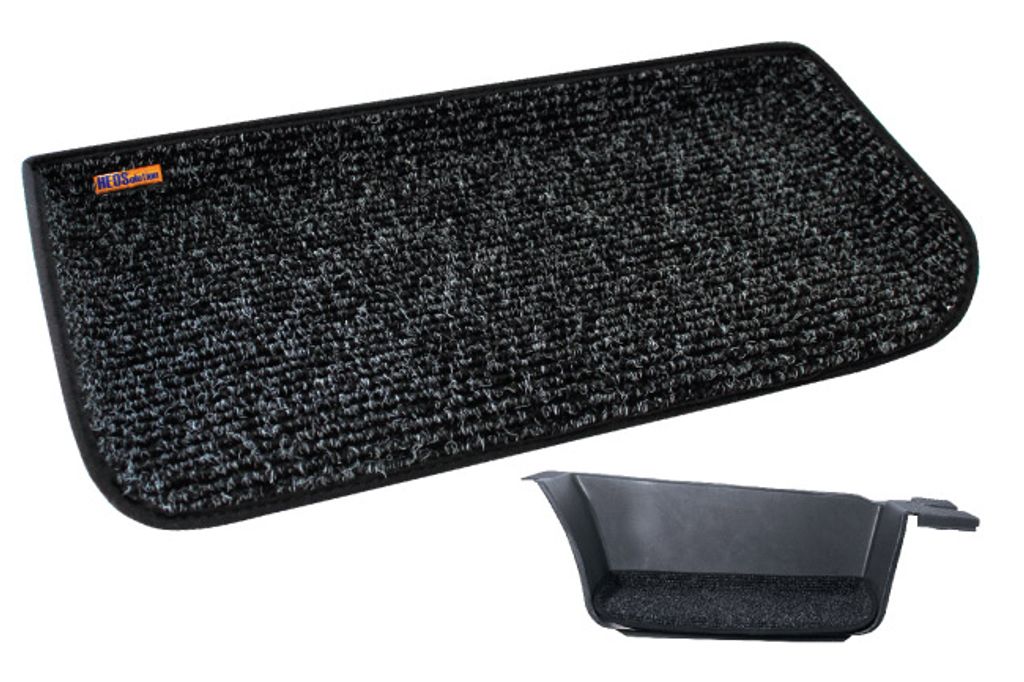På baksidan sitter självhäftande kardborre som gör installationen snabb och enkel. Ingen extra fastsättning behövs. Den pressade skålformen följer instegets konturer och ser till att mattorna ligger stabilt.