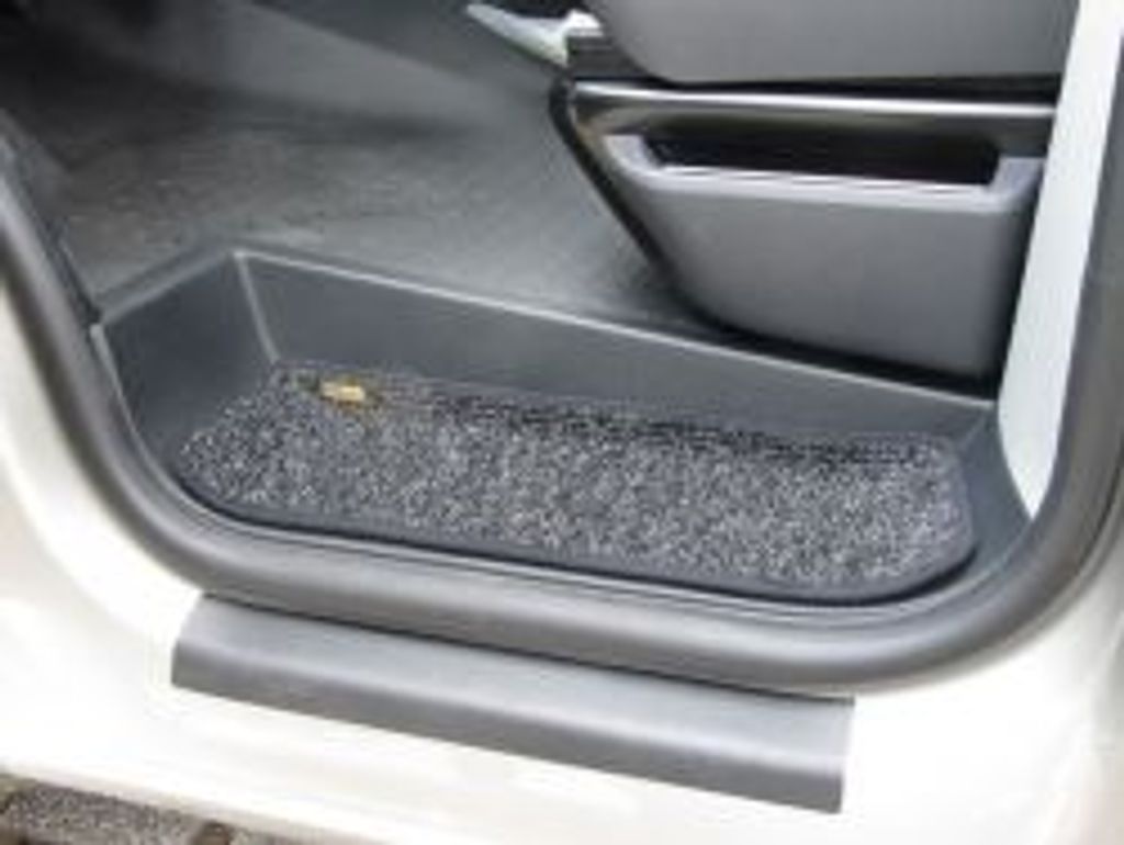 HEOSdoor mat® instegsmattor är ett 3-delars set anpassat för VW T5 och T6 som skyddar både insteget i förarhytten och vid sidodörren. Mattorna fångar upp smuts och väta direkt där du kliver in – ett praktiskt tillbehör för van, husbil och personbil.