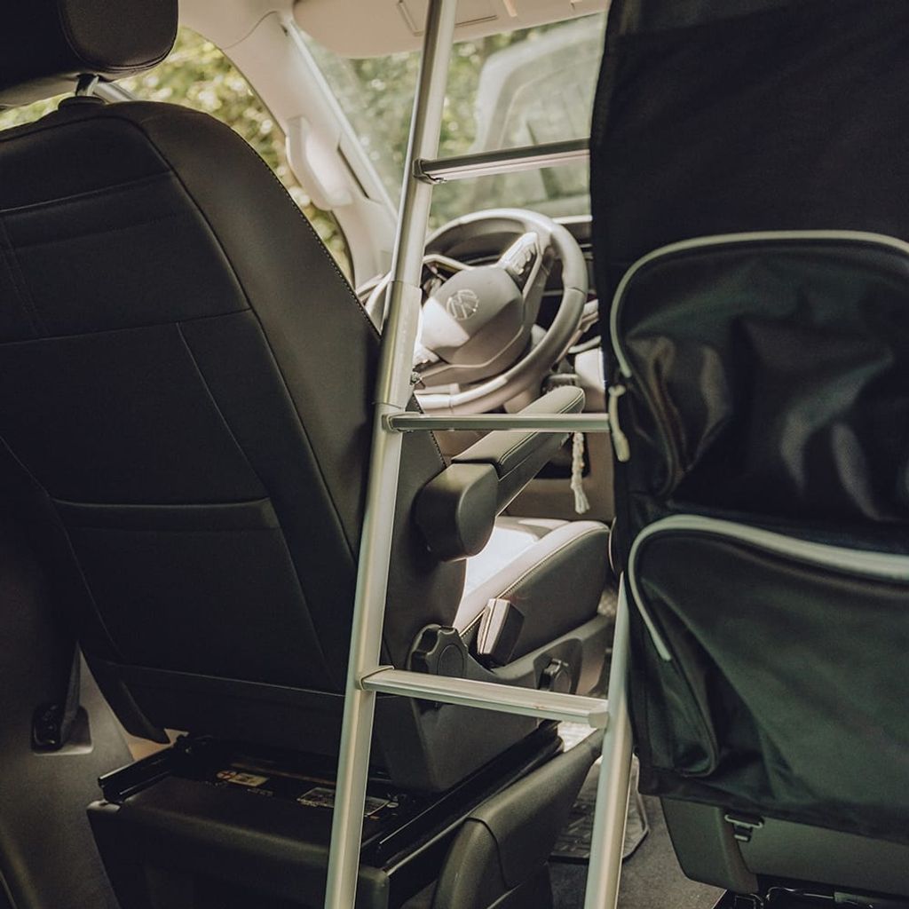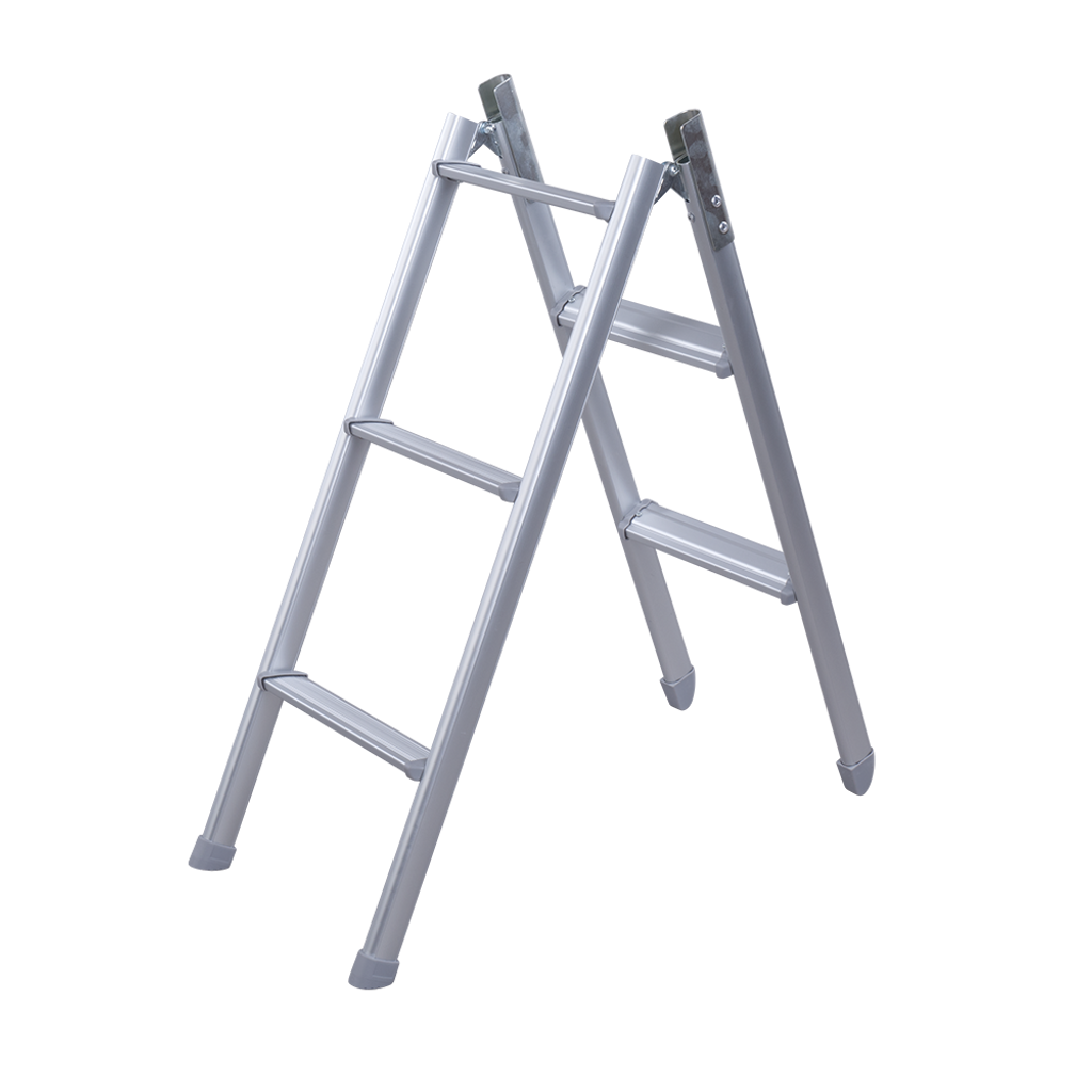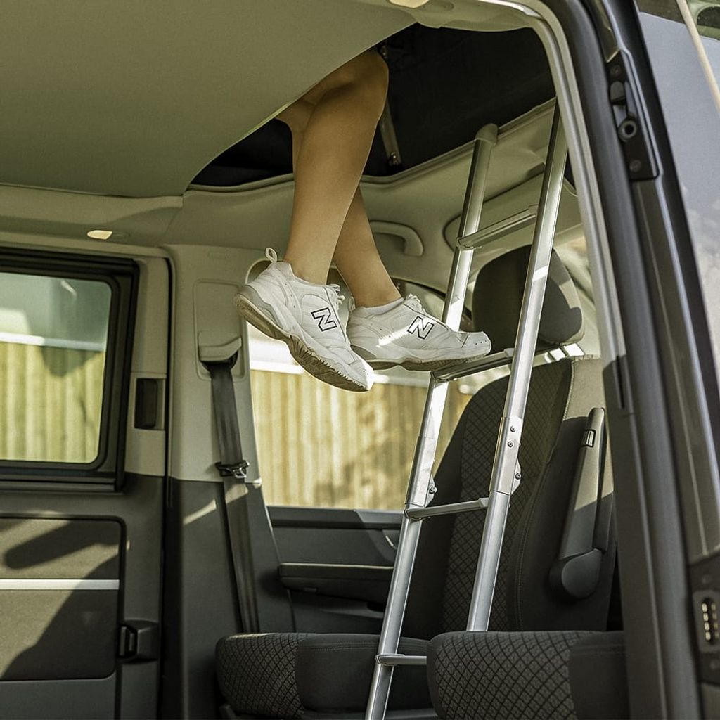 Hopfällbar stege i aluminium från BusBoxx är framtagen för att ge trygg åtkomst till våningssovtak och last på biltak vid camping, resor och vanlife. Produkten passar plåtis, campervan och skåpbil och fungerar som ett smidigt tillbehör i din campingutrustning.