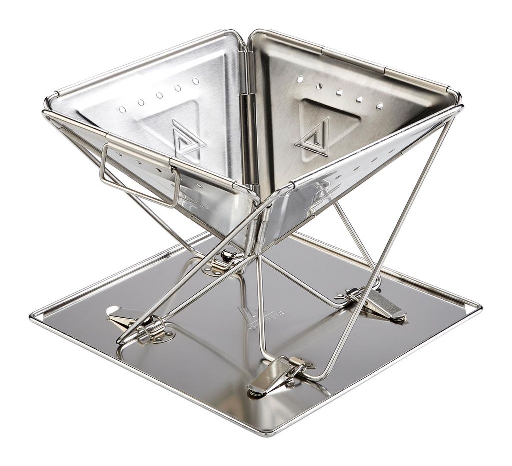 Stabil och kompakt friluftsgrill i stål med justerbart galler och eldstadsfunktion. Perfekt för camping, trädgård och friluftsliv med enkel montering och hög värmetålighet.