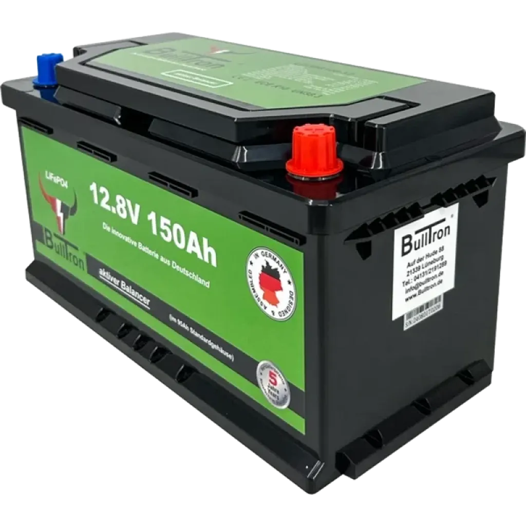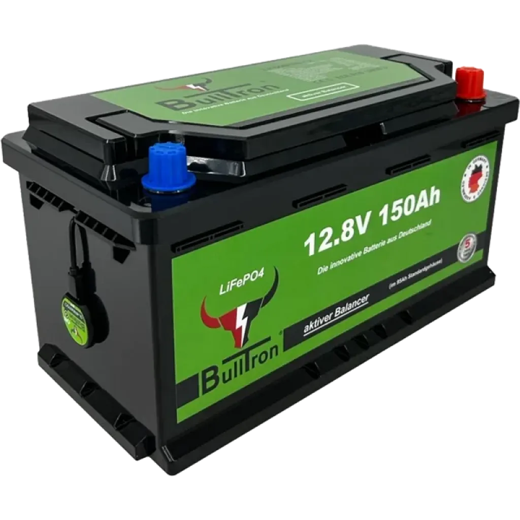 BullTron 150 Ah LiFePO4 är ett tysktillverkat litiumbatteri som väger endast 16 kg men ersätter upp till 300 Ah bly/GEL/AGM. Samma mått som ett 95 Ah blybatteri, 6 000 cykler vid 80 % DOD, stabil spänning även vid hög last och integrerat BMS-skydd. Skruvat hölje ger enkel service och 5 års garanti.