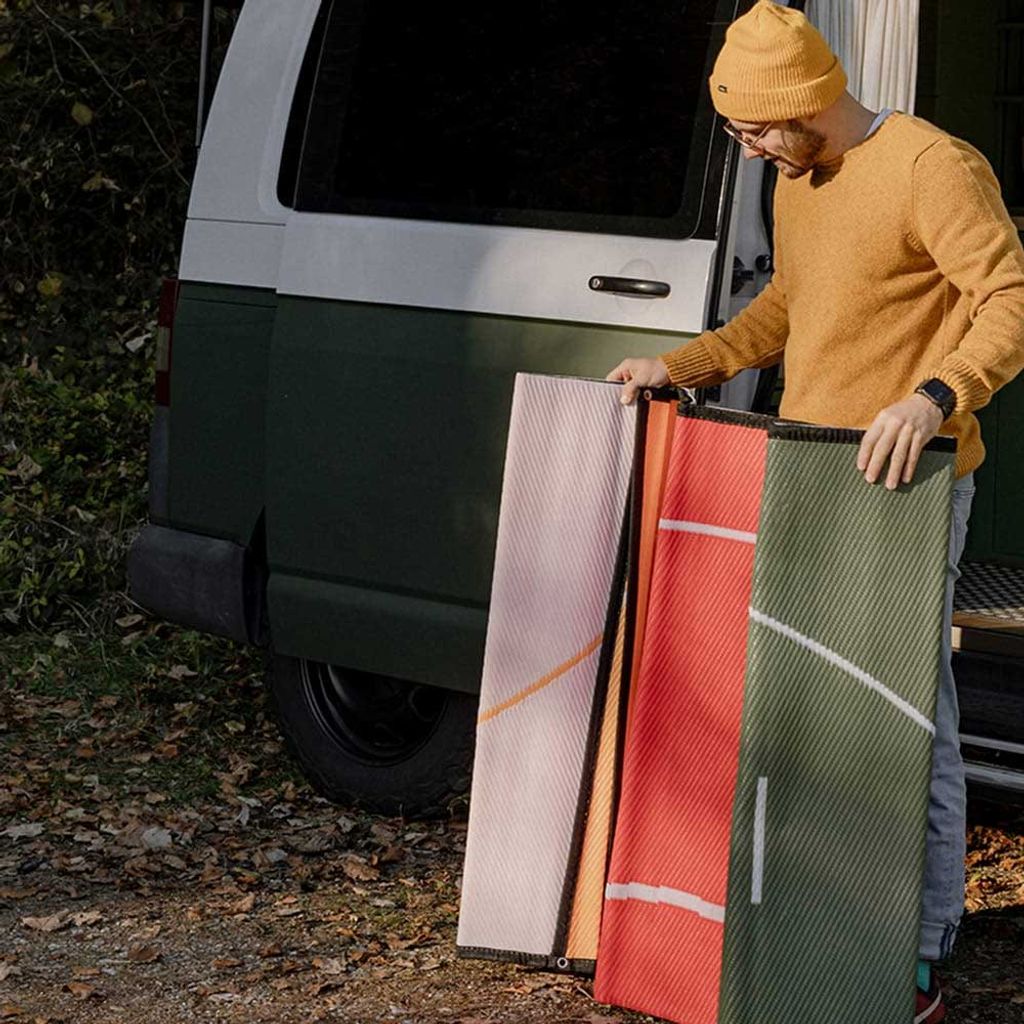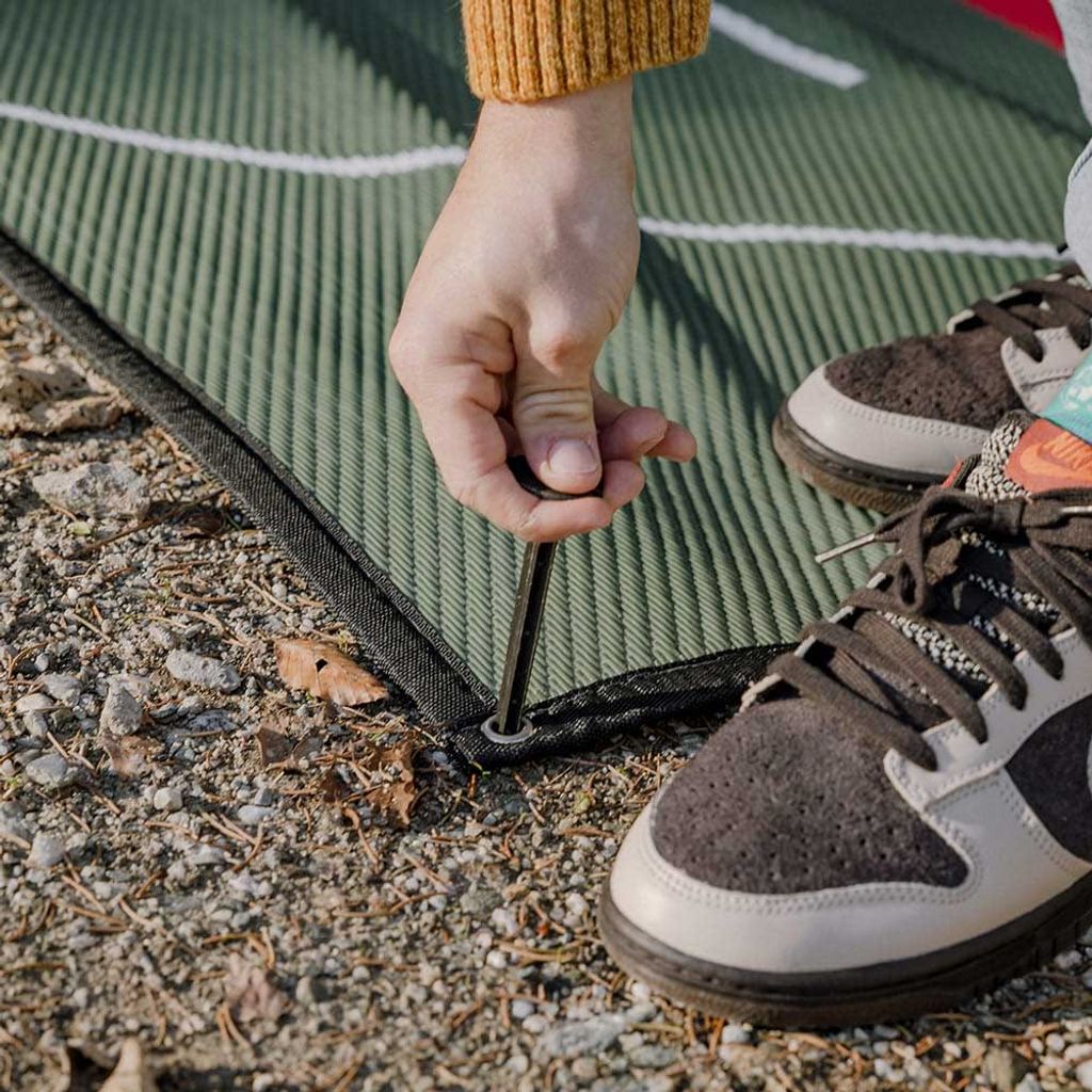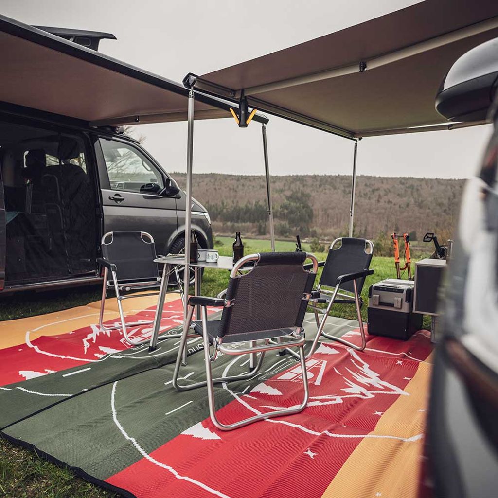 En slitstark, lätt och UV-resistent matta i polypropen som skyddar underlaget och håller rent vid förtält, husbil eller van. Enkel att rengöra, flamskyddad och levereras med praktisk bärväska.