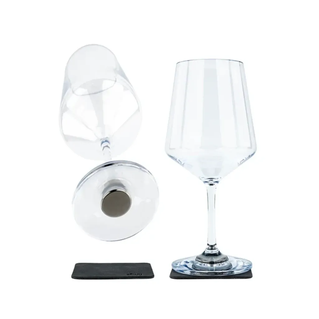 Upptäck friheten med våra magnetiska plastglas WINE CLASSIC, designade för att eliminera välta eller skramlande glas – oavsett om du är på väg, till sjöss eller campar. Setet innehåller två stilrena glas i högteknologisk plast med kristalliknande glasutseende och två självhäftande metall-Nano-Gel-pads i svart. Produkterna är tillverkade i Tyskland enligt högsta kvalitetsstandard.