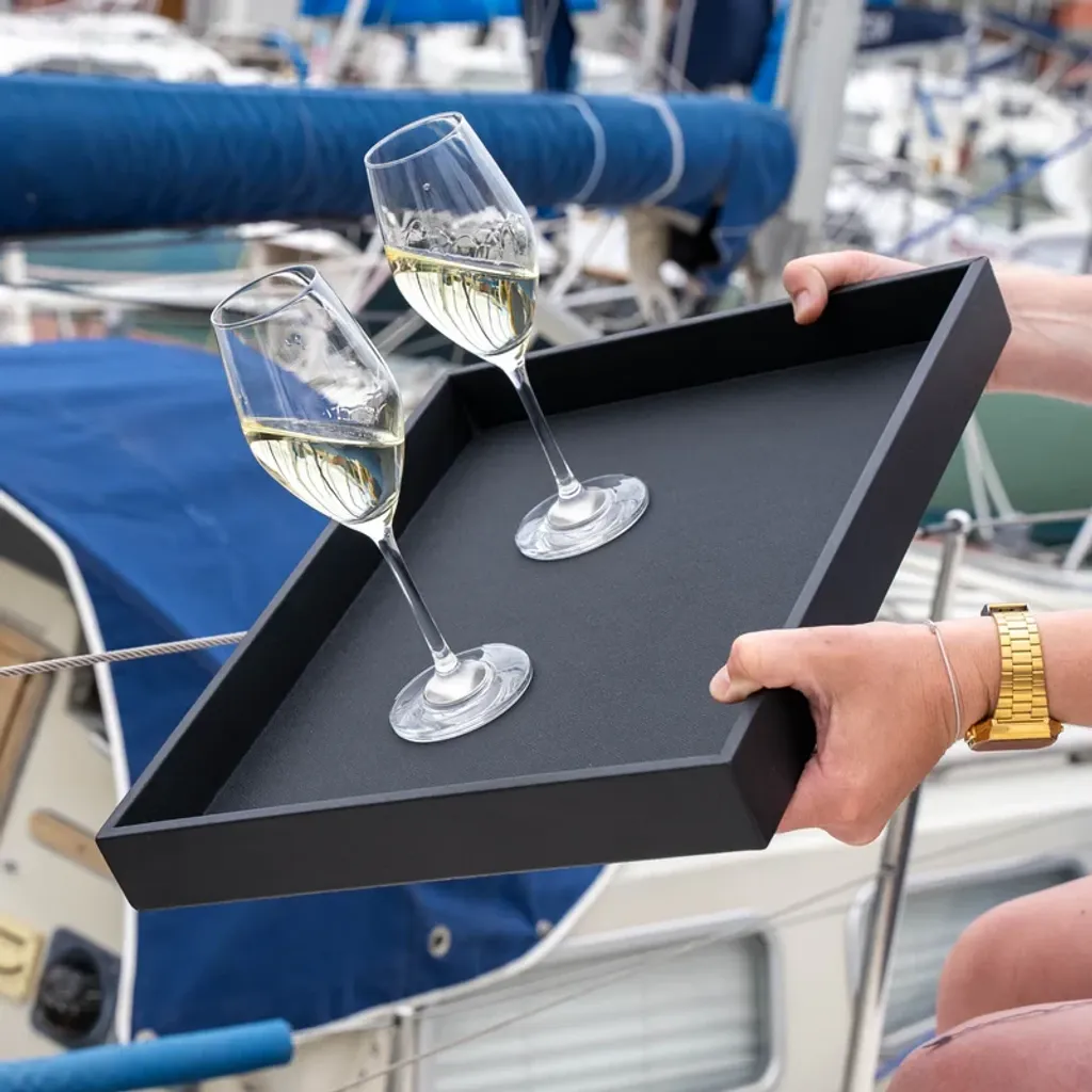 Ge din servering en exklusiv touch med vår Metallbricka i läderlook SVART – en smart och stilren lösning för att kombinera funktion med design. Denna metallbricka är klädd i högkvalitativ imitationsläder med en halksäker yta som gör den idealisk för användning tillsammans med magnetiskt porslin. Perfekt för dig som campar, bor i husbil eller vistas på båt där stabilitet är ett måste.