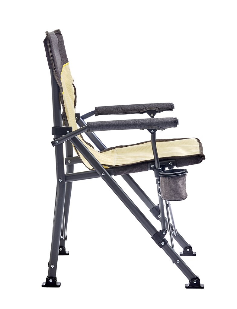 Roxy är en robust hopfällbar stol i färgen Boulder. Den har breda fötter som förhindrar att den sjunker, en extra hög rygg, dricks- och flaskhållare samt inbyggd kapsylöppnare. Tål upp till 120 kg och bärbar i påse med remmar.