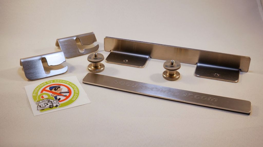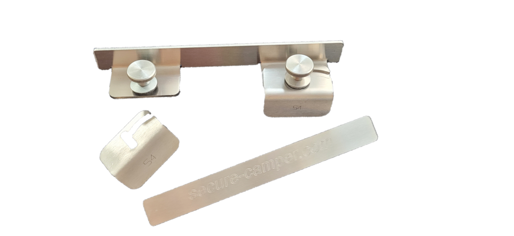 Secure Camper för Dometic S4/S10. Tillverkad i rostfritt, saltvattenbeständigt stål. Monteras utan borrning och passar fönster med begränsat utrymme vid låshandtaget. Minst två profiler per fönster. Välj storlek i måttabellen.