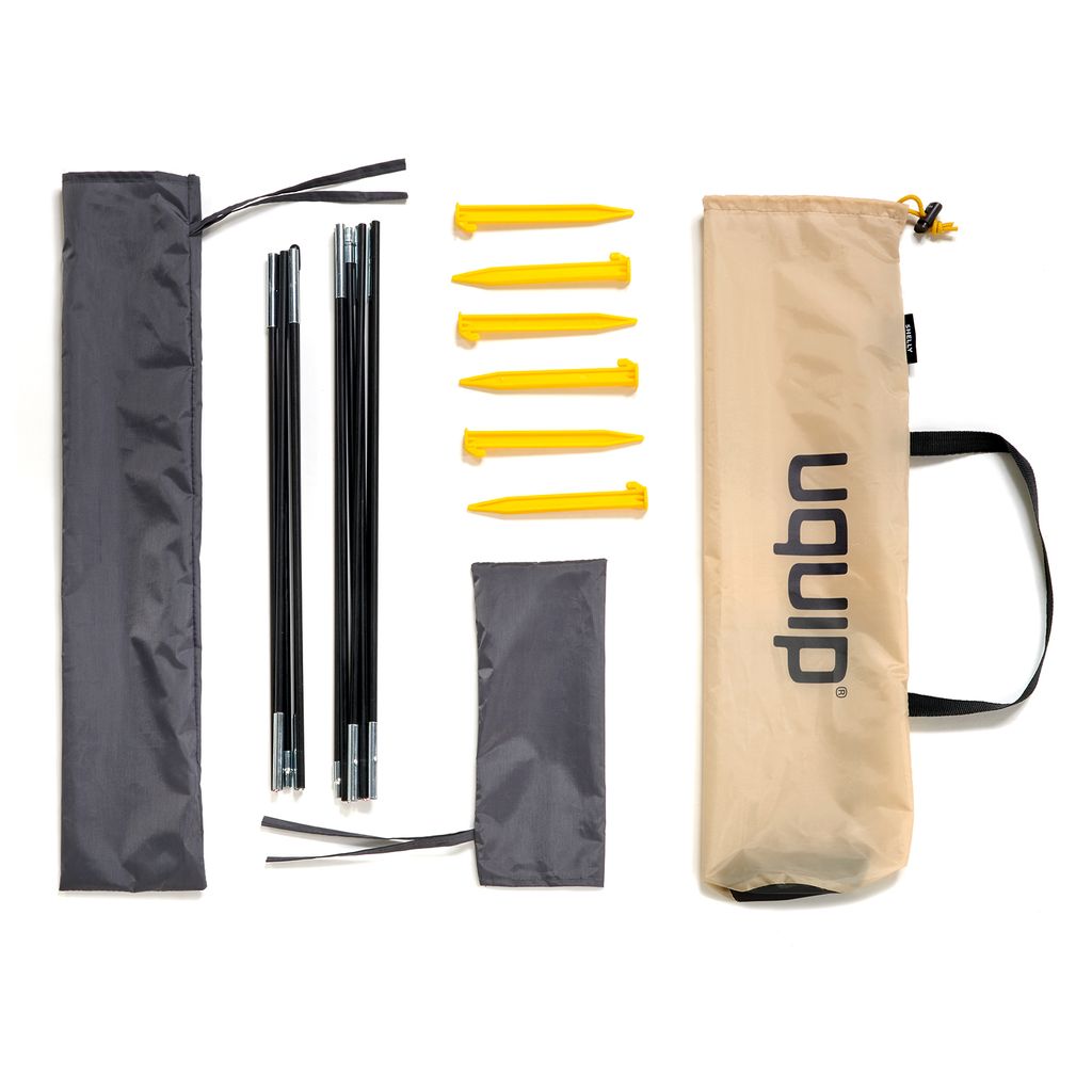 | Skydd & funktioner | UPF 50+, vattentät botten, sandpåsar, avspänningslinor & stolpar, innerficka |