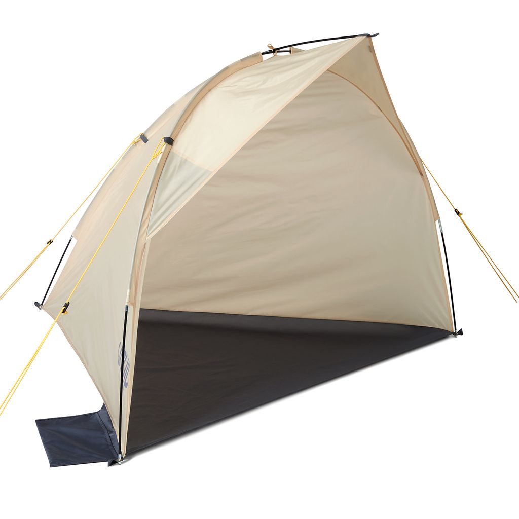 För ökad stabilitet finns två integrerade sandfickor samt tältlinor och pinnar som håller det på plats även i blåst. Den flexibla men hållbara ramen i glasfiber gör tältet stabilt men ändå mycket lätt att bära. En innerficka erbjuder plats för mindre föremål som mobil eller solkräm.