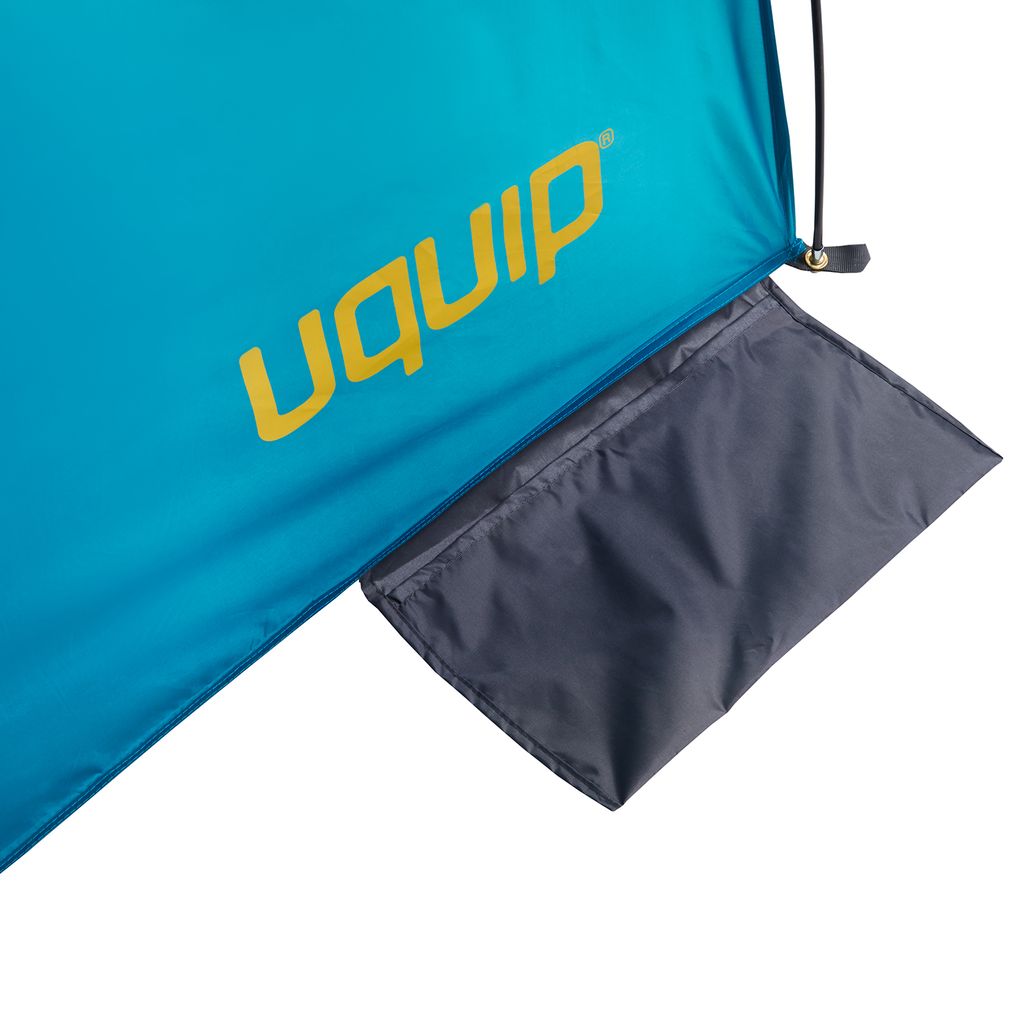 Tyget har UPF 50+-skydd mot stark sol samt en vattenavvisande yta och ett helt vattentätt golv. Det passar bra på fuktiga underlag som sand eller gräs och skyddar både människor och packning mot väta och smuts.