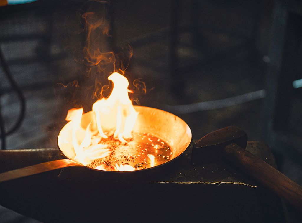Kolstålet är helt PFAS-fritt och utvecklar en mörk patina som fungerar som naturlig non-stick-yta. Med varje användning förbättras stekegenskaperna och pannan blir mer motståndskraftig mot slitage. Vid regelbunden inbränning, exempelvis med SMED:s underhållsolja, får pannan en naturligt skyddande yta och unik karaktär.