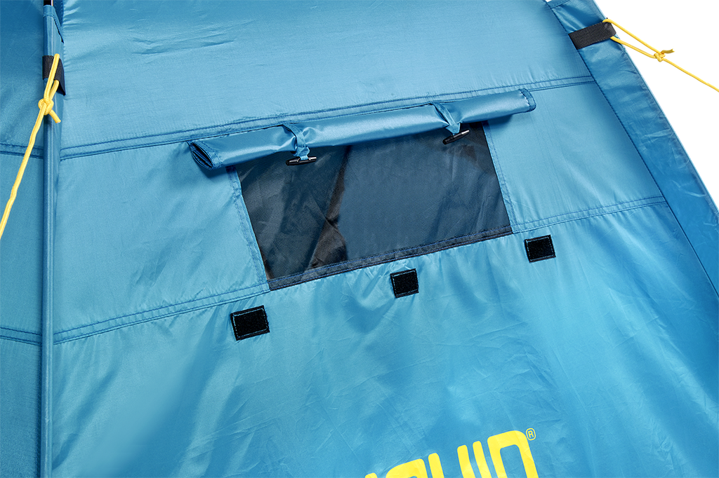 Utrymmet är generöst med måtten 200 × 150 × 115 cm (L×B×H), vilket ger plats för flera personer. Golvet är vattentätt och förklarning att tåla grus och fukt. Dessutom finns tre stängbara ventilationsfönster med myggnät – idealiska vid vind eller värme.