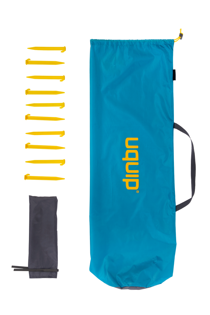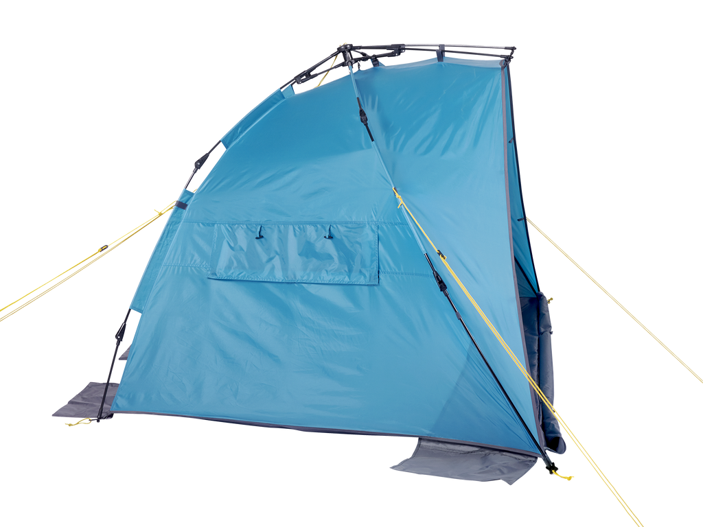 Tältet har smarta detaljer som sandfickor, tältpinnar och barduner för extra stabilitet även i blåst. En dragknäppd ingång ger skydd och integritet när så önskas.