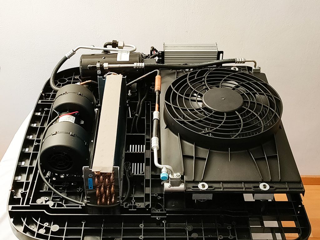 Takmonterad luftkonditionering 230 V för husbil och campervan är lösningen för dig som vill resa svalt även under högsommarens hetaste dagar. Den kompakta enheten monteras enkelt på taket utan större ingrepp och ansluts till campingens eller inverterns nätspänning. Med tre fläkthastigheter, riktbara luftutblås och automatisk termostat får du snabb, jämn och tyst kylning i hela bodelen.