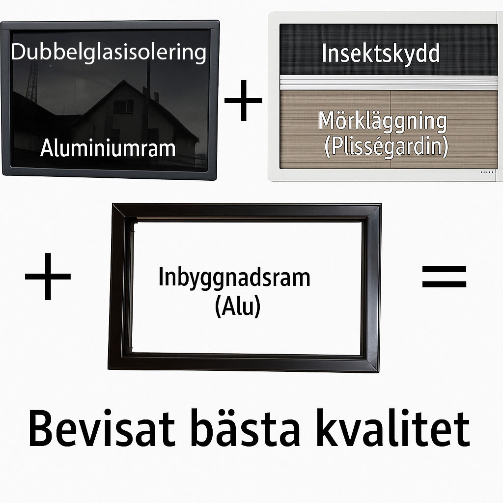 | Integrerade funktioner | Plissémyggnät och mörkläggning |