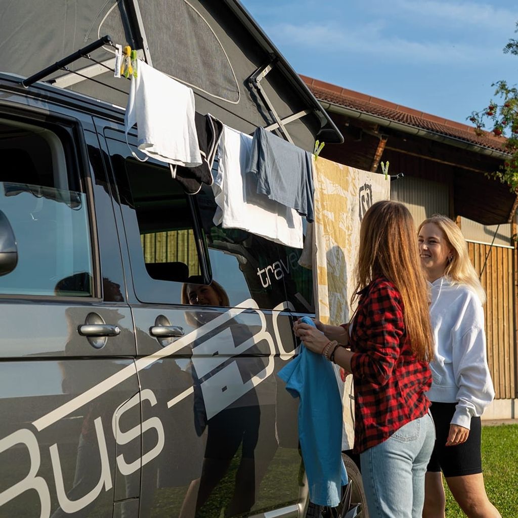 Smidig och robust tvättlina för VW T5 T6 perfekt anpassad för Volkswagens Kederschiene. Enkel att montera vädertålig och platsbesparande. Idealisk för camping; roadtrips och friluftsliv. Finns även som DIY-variant för anpassad längd. En oumbärlig lösning för smart tvätthantering på resan.