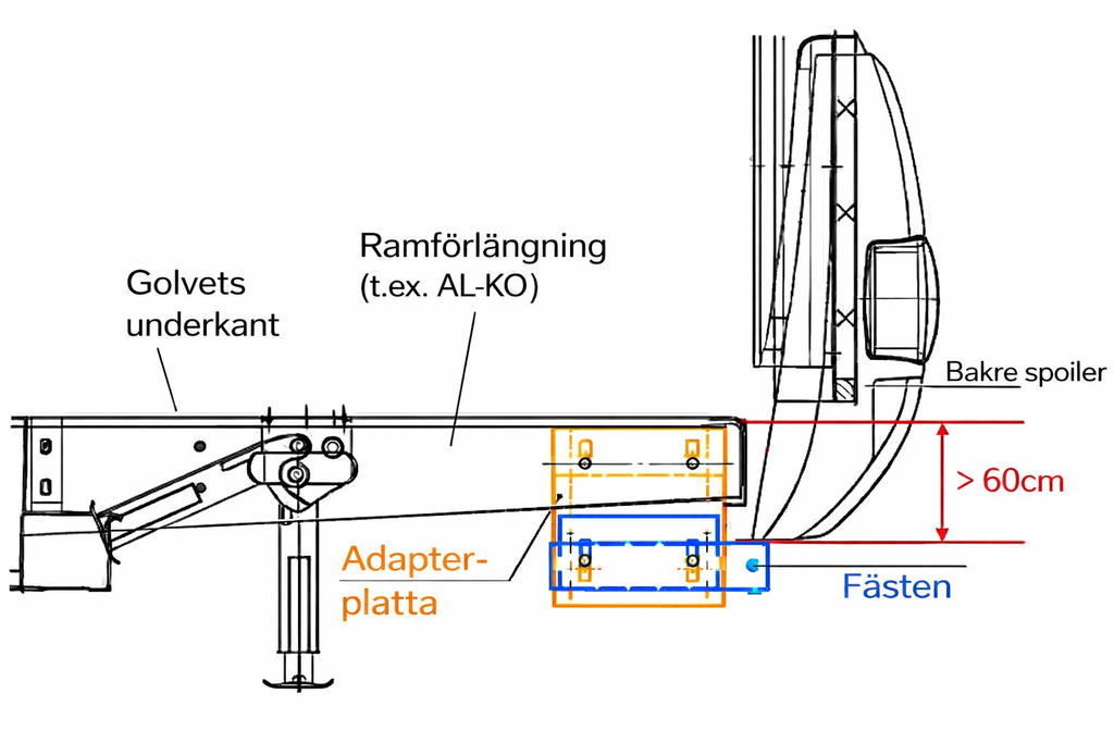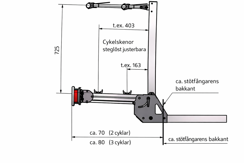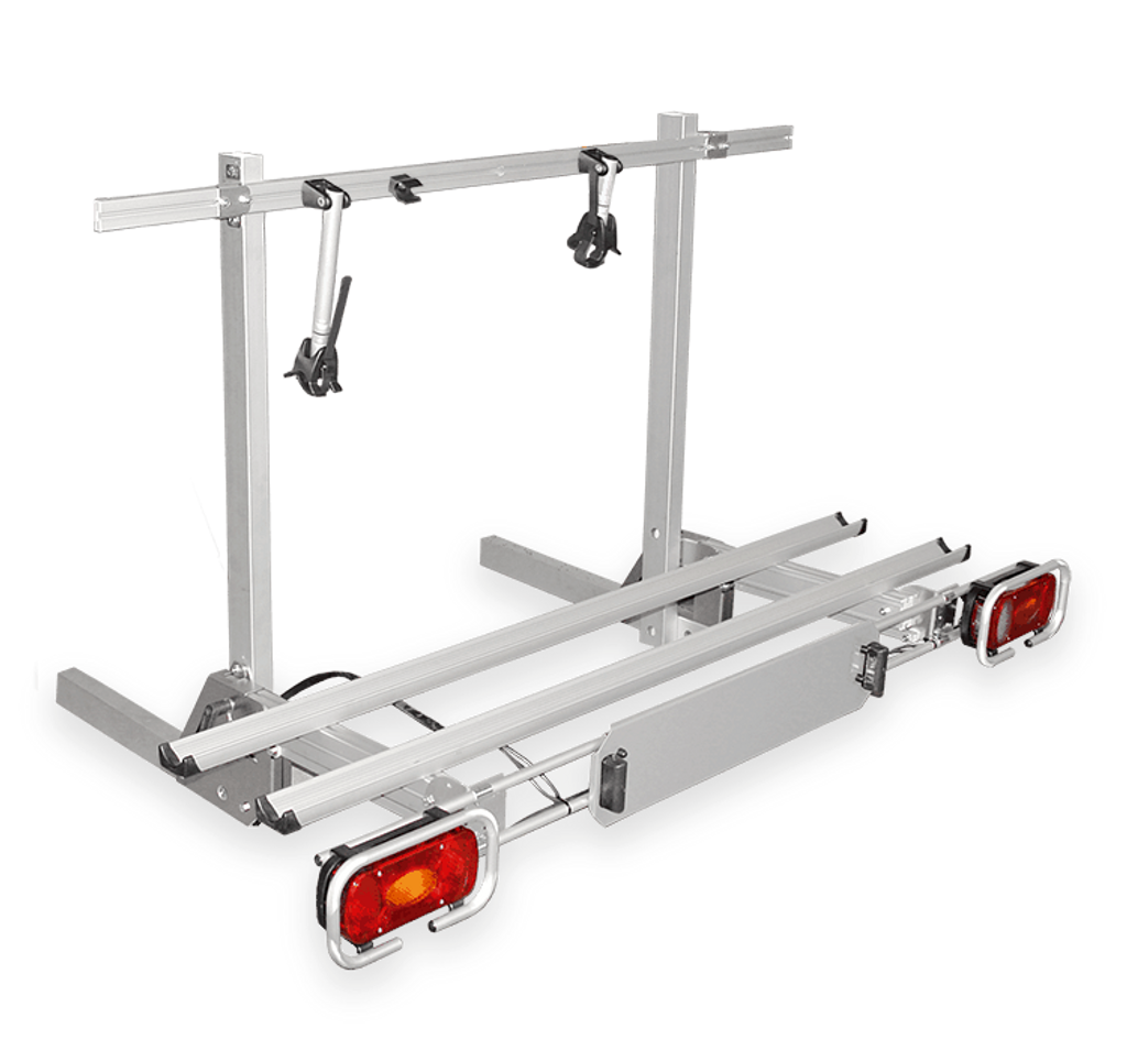 Denna kraftiga och genomtänkta cykelhållare är utformad för montering på husbilens ramförlängning, exempelvis från AL-KO. Konstruktionen är både hopfällbar och avtagbar, vilket gör den till ett utmärkt val för dig som vill ha maximal flexibilitet och säker transport av cyklar.