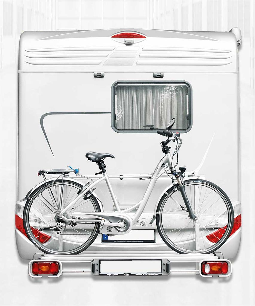 Uni F/A är en hopfällbar och avtagbar cykelhållare för husbil. Monteras på ramförlängning och rymmer 2–3 cyklar, även elcyklar. Maxlast 90 kg. Förmonterad med cykelskenor, hållarmar, belysning och 13-polig kontakt. Enkel att ta av vid behov.