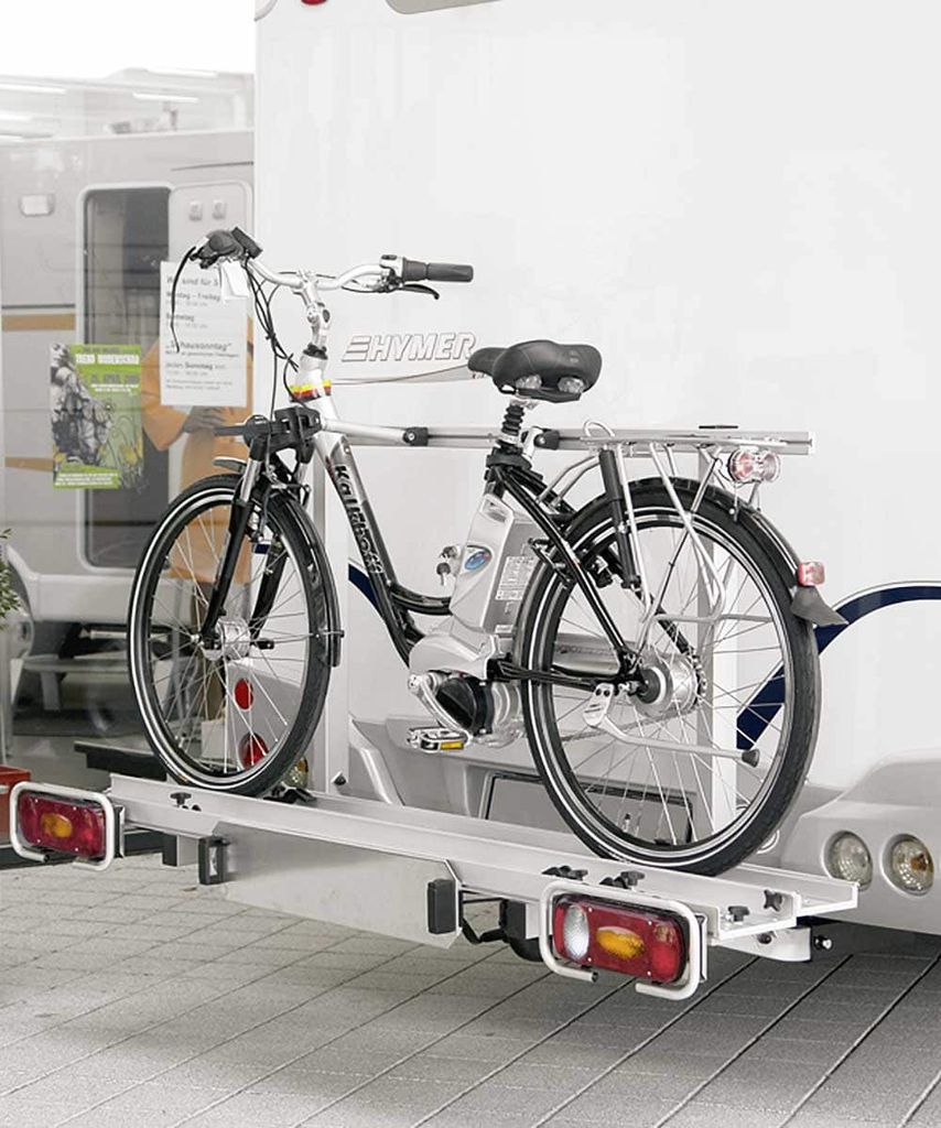 Uni S/A Moped- & Cykelhållare för Husbil.Monteras på ramförlängning; klarar upp till 170 kg. Passar 1 moped, kombination moped + cykel eller upp till 4 cyklar. Lätt aluminium, komplett med ramp och fästen.