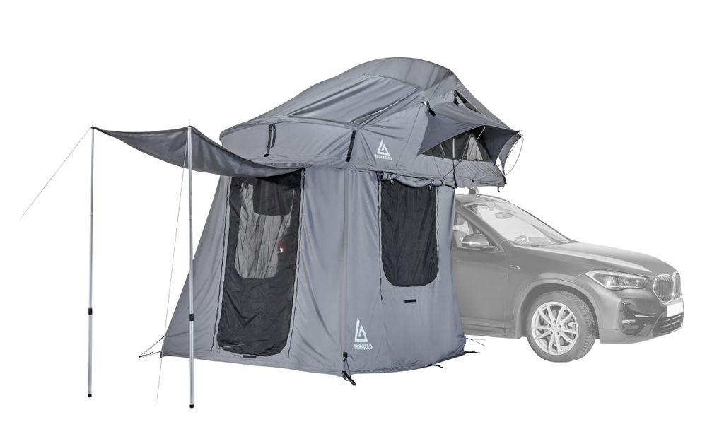 Annexet har två fönster, dubbeldörr med dragkedja, stormlinor, teleskopstänger och åtta förankringsspikar. Baksidan har öppning mot fordonet. Längden kan justeras mellan 220 – 240 cm och passar fordonshöjd 200 – 240 cm. Konstruktionen kräver inga verktyg och är anpassad för snabb upp- och nedmontering. Ett hållbart tillbehör för dig som vill utöka ytan vid ditt taktält.