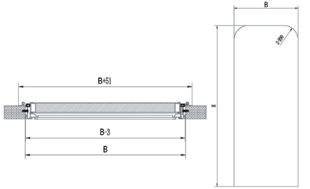 Installationen är enkel tack vare den universella designen som passar väggar med en tjocklek på 25-50 mm. Dörren finns med både höger- och vänsteranslutning, vilket ger maximal flexibilitet oavsett fordon. Den är även utrustad med en tätningslist som skyddar mot regn och fukt, samt ett ergonomiskt handtag för bekväm hantering.